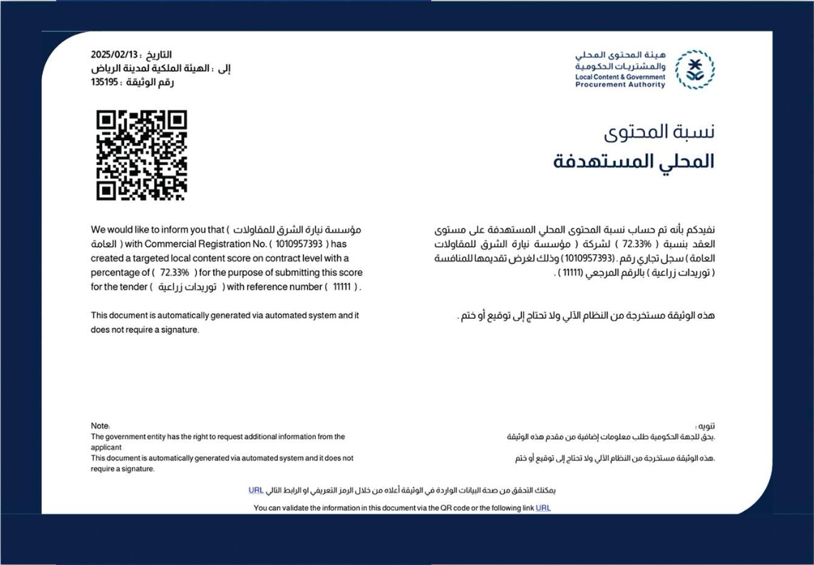 "We extend our sincere appreciation to Nayara Al Sharq General Contracting EST for the successful execution of projects and their strong commitment to quality standards and deadlines."